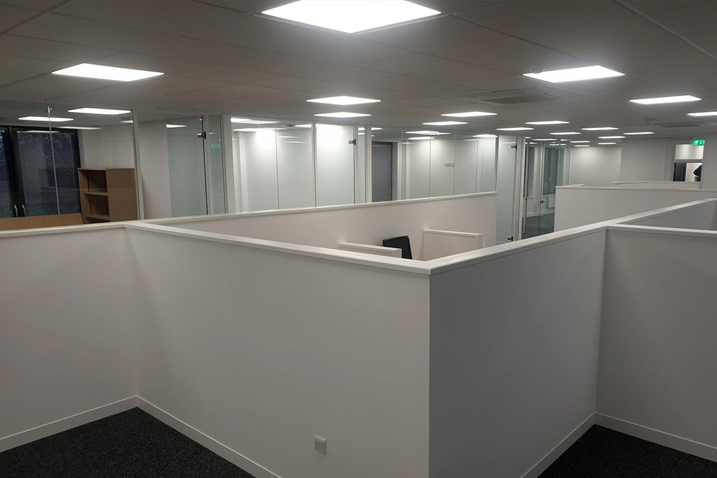 The first-floor office accommodation had a raised access floor throughout with electrical and data boxes at various locations, none of which suited our customer’s required office layout. Our specialist electrical subcontractor repositioned the electrical boxes and replaced the data wiring to suit the new design layout.
